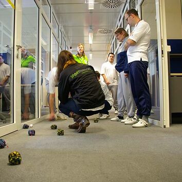 Mit Crossboccia wird jeder Ort zum Spielfeld. Es ist aus den Sportarten Boccia und Boule hervorgegangen. Das Besondere an Crossboccia ist, dass man es überall spielen kann. Aufgrund seiner weichen Bälle ist es sogar im Büro oder im Treppenhaus möglich. Crossboccia, eingebunden in den Arbeitsalltag, macht den Kopf frei und bringt dem gesamten Team Spaß und Freude.